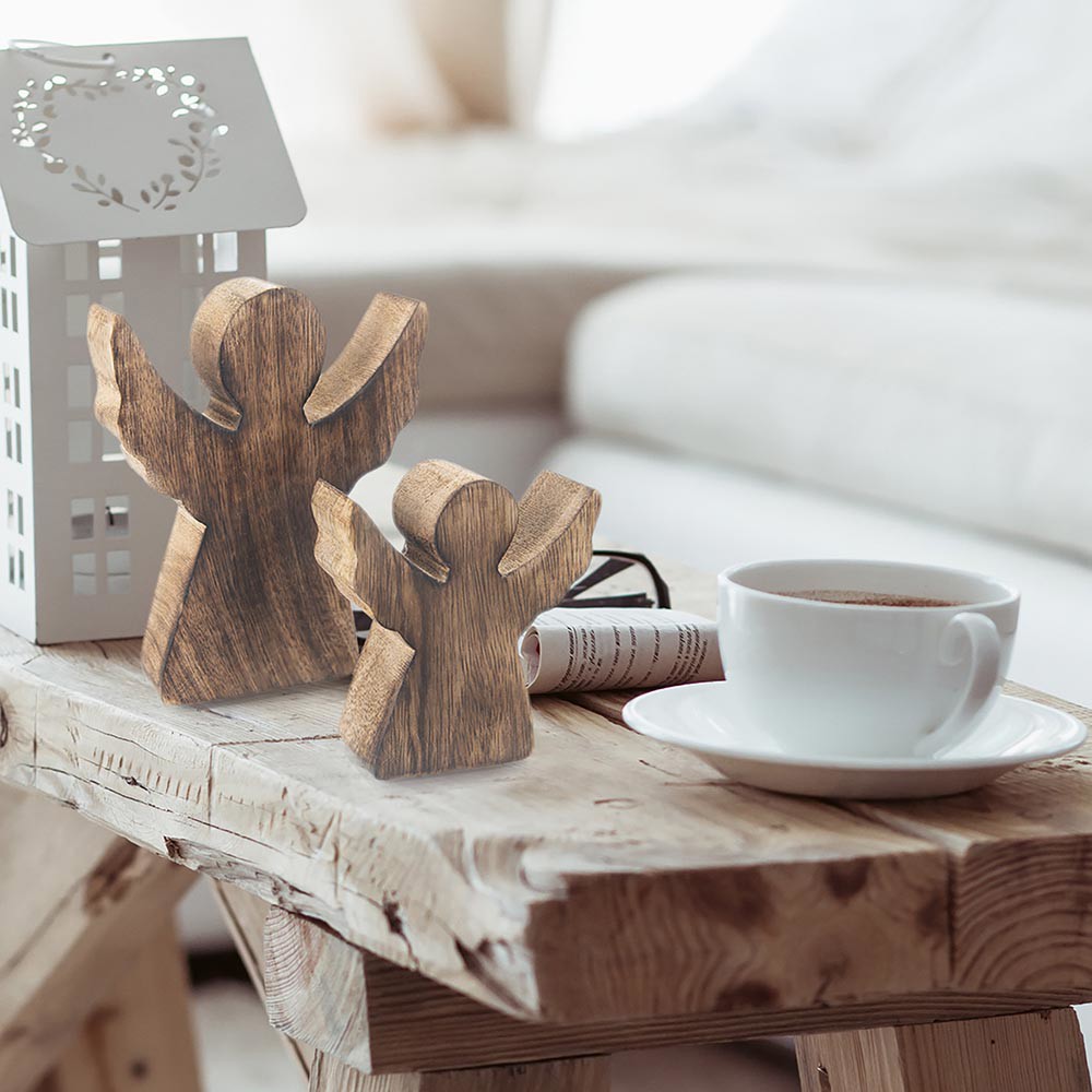 Anjel, dekorácia z mangovníkového dreva. Ručne vyrobené s miestom pôvodu v Indii.