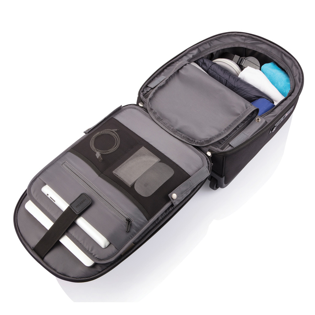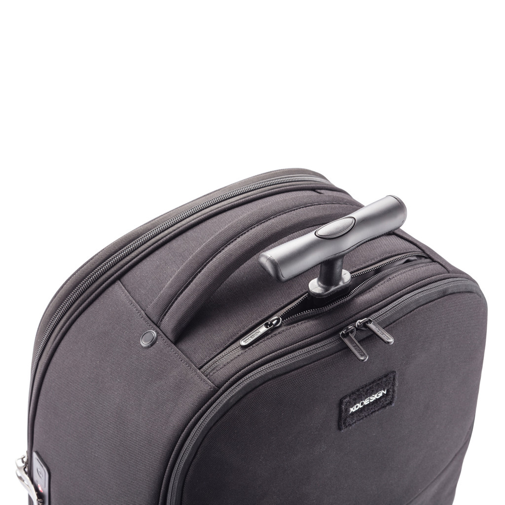 Pohodlný ako kufrík, praktický ako batoh. Cestovný batoh na kolieskach Bobby je ideálnym spoločníkom na krátke výlety či každodenné cestovanie. Pre používanie na kolieskach jednoducho schovajte ramenné popruhy do príslušnej zadnej časti batohu a vysuňte madlo. Pre používanie ako batoh, zasuňte madlo a upevnite ramenné popruhy. Kolieska sú potom chránené pre zamedzenie znečistenia chrbta. Batoh je vybavený bezpečnostnými prvkami zabraňujúcimi vykradnutie, vrátane TSA® zámku na číselný kód. Vnútorná časť obsahuje hlavné oddiel na cestovné veci, fľašu na vodu, vrecká na drobnosti a RFID vrecká. Prednú časť je možné otvoriť do 30° a ponúka priestor pre bezpečné uchovanie až 17"notebooku. Vyrobené z rPET s technológiou AWARE™ pre doloženie skutočného obsahu recyklátu. Veľkosťou vhodné na palubu lietadla. Registrovaný dizajn®