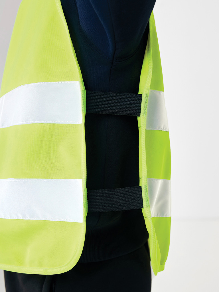Vysoko viditeľná bezpečnostná vesta veľkosti S určená pre deti vo veku 7-12 rokov, výšky 90-155 cm. Veľká plocha vhodná na potlač na prednej aj zadnej strane. Háčik a zapínanie na pútka pre ľahké oblečenie. Elastické gumičky na vnútornej strane pre vyššiu pružnosť pri nosení cez iný odev. Prísne testované, v súlade s normou EN 17353:2020 typ AB3. Ďalej v súlade s pokynmi podľa nariadenia (EÚ) 2016/425 pre osobné ochranné prostriedky kategórie II. Vyrobené z GRS recyklovaného PET. GRS (Global Recycle Standard) je globálny štandard, ktorý umožňuje overiť použitie recyklovaného materiálu v produkte naprieč celým dodávateľským reťazcom. Celkový podiel recyklátu podľa váhy produktu: 58%.