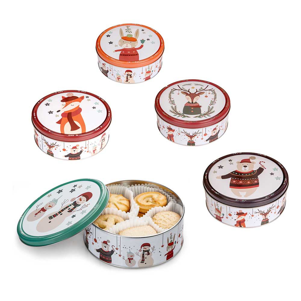 Chrumkavé sušienky v darčekovej krabičke s vianočným motívom, 150 g. Žiadna preferencia pre dizajn plechovky, dodávaný v náhodnom výbere motívov.