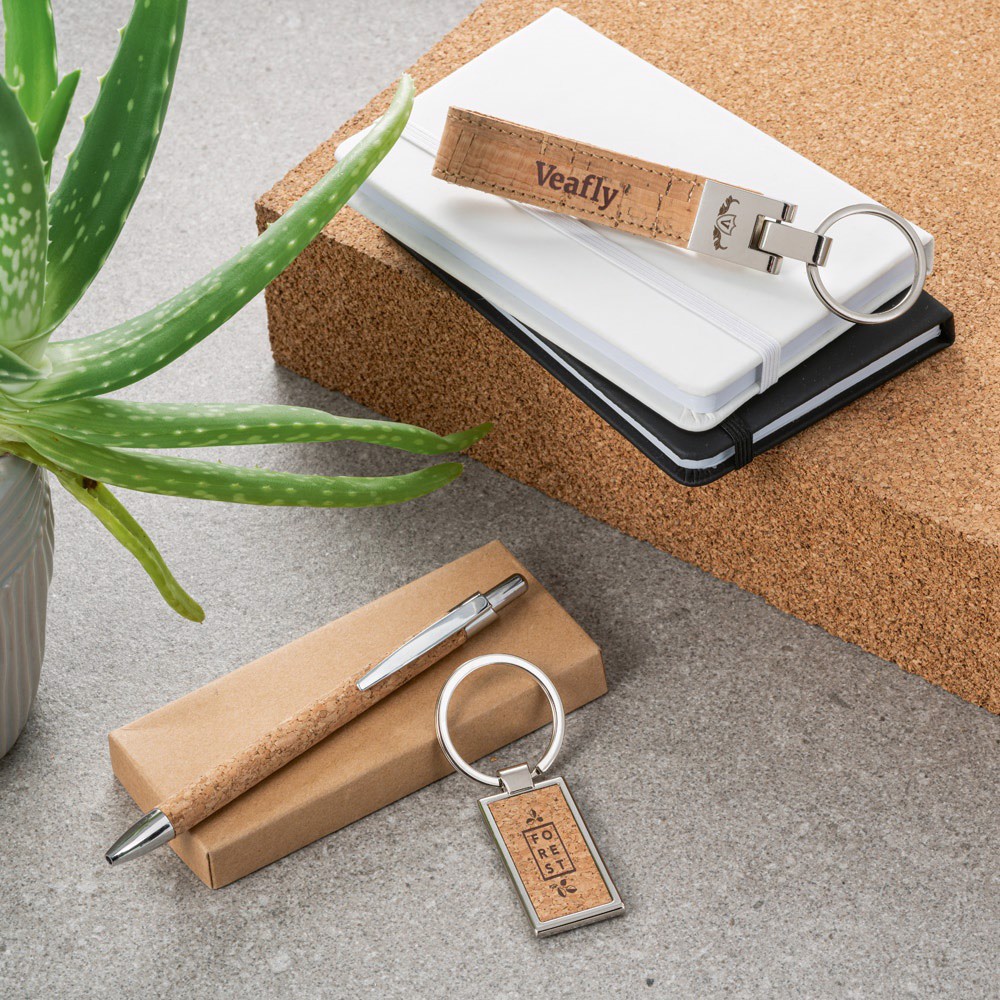 Kľúčenka z korku a kovu. Dodávané v prémiovej darčekovej krabičke z kraftového papiera. Keďže výrobok je vyrobený z prírodných materiálov, farba a výsledok tlače sa môžu medzi výrobkami líšiť. Oko: ø 32 mm | Produkt: 112 x 18 x 7 mm | Celkom: 138 x 32 x 7 mm | Krabica: 125 x 55 x 15 mm