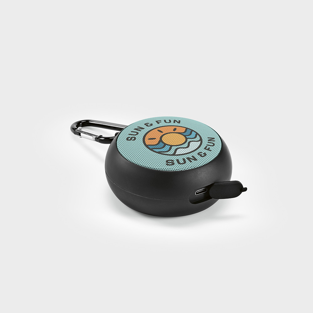 Darwin je 5W reproduktor vyrobený z recyklovaného ABS, vybavený 3,7V 1000mAh batériou, ktorá poskytuje 1,5 hodiny prehrávania. Doba nabíjania je približne 2 hodiny cez USB-C pripojenie. Dodáva sa s karabínou, ktorá vám umožňuje zavesiť ho alebo nosiť so sebou. Kovová mriežka ponúka možnosť úplného farebného prispôsobenia. Ponúka vodotesnú ochranu IPX5. Individuálne balený v kraftovej krabičke.