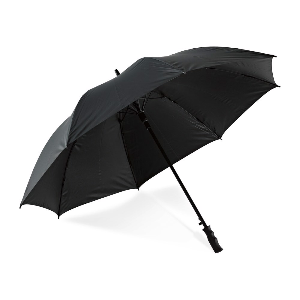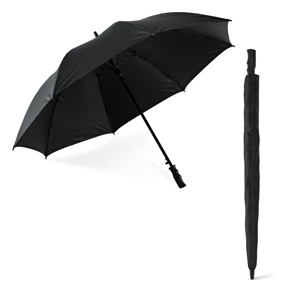 Dáždnik z pongee 190T s laminátovým držadlom a rebrami a rukoväťou z PP. Dáždnik je odolný voči vetru a má automatické otváranie. Výrobok sa dodáva v puzdre. Dáždnik: ø1170 x 880 mm | Puzdro: 85 x 725 mm
