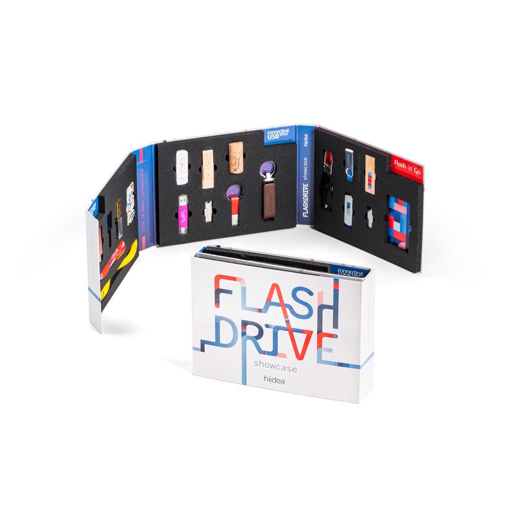 FLASH DRIVE SHOWCASE sa skladá z 19 flash diskov rôznych tvarov, veľkostí a materiálov upravenými rôznym farbami a technológiámi. Prináša vzorky našej Flash'n'Go ponuky - flash disky skladom, dodané v rekordnom čase a vzorky ConnectingYou USB - plne prispôsobiteľné flash disky, importované priamo z Ázie s kapacitou až 32 GB. Obal je vyrobený z plastifikovanej lepenky a vďaka zabudovaným magnetom zapínateľný. Obsahuje nasledujúce produkty a technológie:77664 | 77432 | 77506 | 77508 | 77704 | 77562 |77595 - Sieťotlač, laser, 77700 - PVC 2D, 77515 - Sieťotlač (telo), Tampón Tlač (klip), 77689 | 97434 - Laser, 77696 - Sieťotlač,77559 - Sieťotlač, laser, doming77523 - Sieťotlač e Horúca Ražba,97548 | 97549 | 97433 - Laser, Tampón Tlač, Sieťotlač, 97435 - Tampón Tlač, laser, 97436 - Sieťotlač, laser, Tampón Tlač, Digitálne UV, 97437 - Digitálne UV,97438 - Horúca Ražba, 249 x 176 x 50 mm