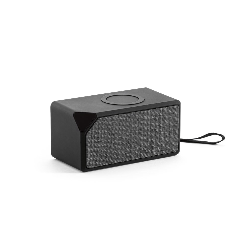 Prenosný reproduktor s bezdrôtovým nabíjaním na hornej strane. Praktický 2 v 1, ktorý spája zábavu a funkčnosť.Materiál: ABS, TextíliaBezdrôtový prenos: BT v5'0Výkon bezdrôtového nabíjania: 5 WKapacita: 300 mAhPribližná výdrž: 2 hPribližná doba nabíjania: 1 h 30 minVstup: microUSB (10 W) , 3, 5 mmFrekvenčná charakteristika: 20 Hz – 20 kHzOdstup signálu od šumu: > 90 dBCitlivosť: 85 ±3 dBImpedancia: 4 ΩPriemer reproduktora: Ø 40 mmVýkon zvuku: 3 WObsahuje: kábel USB-A / microUSB, 3.5 mm audio kábelDodávka: čierna darčeková krabička 108 x 56 x 54 mm