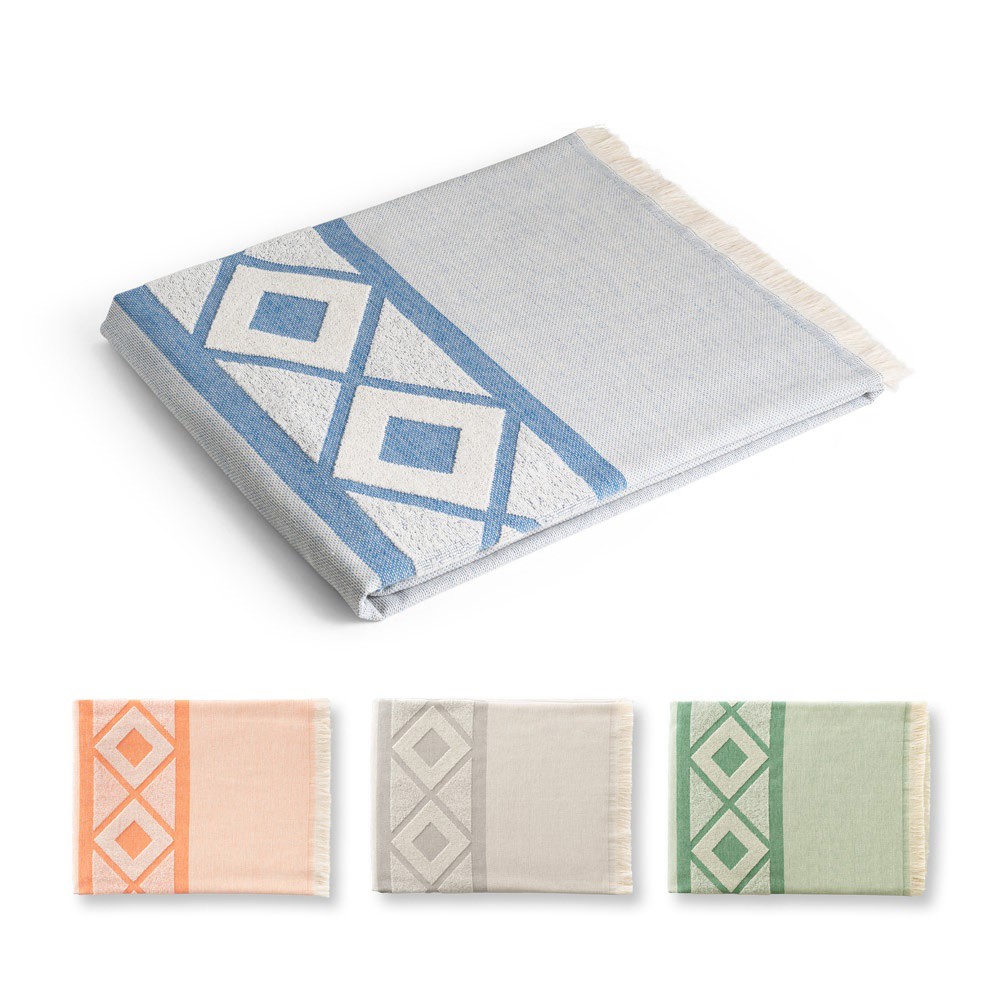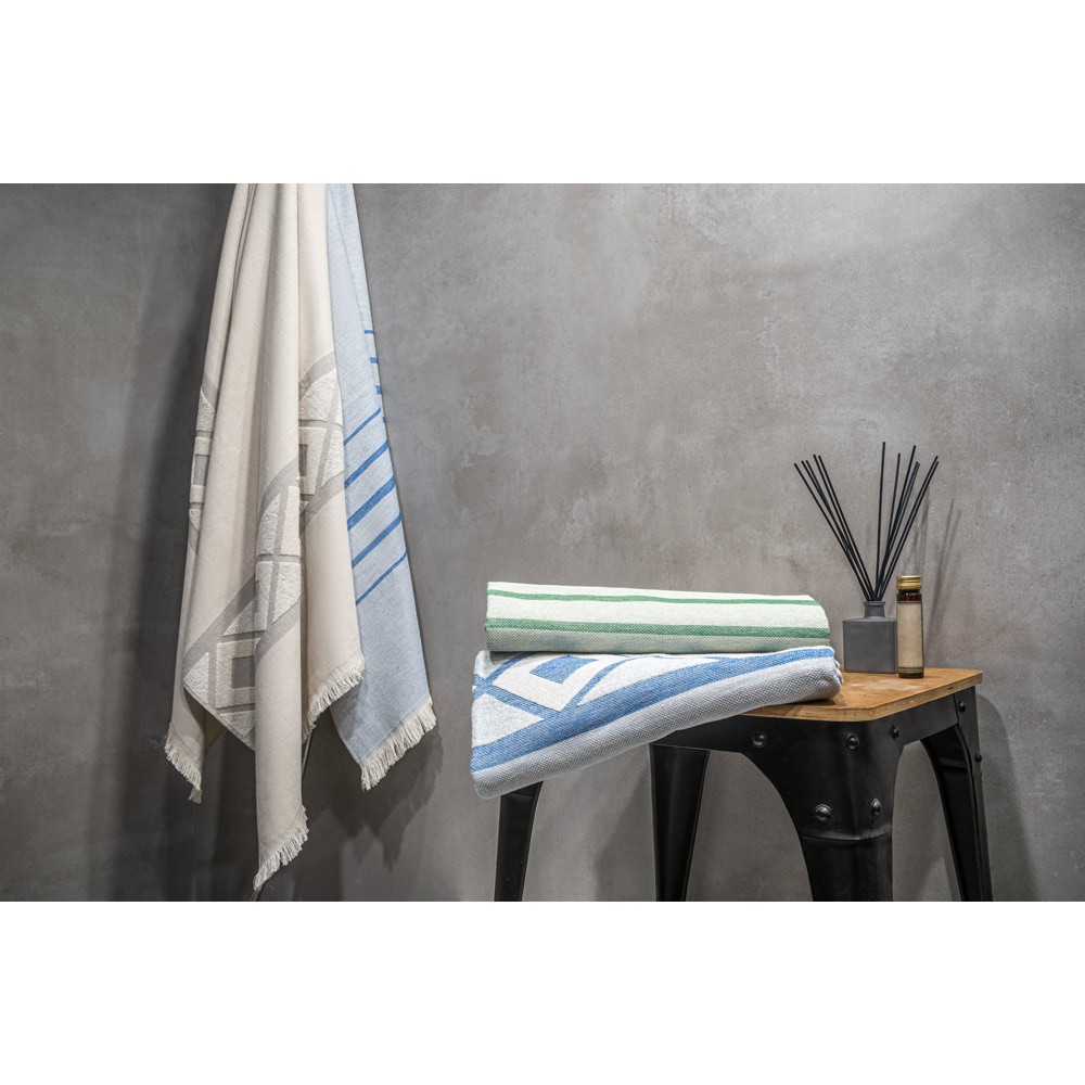 Multifunkčná osuška vyrobená z ľahkej a odolnej bavlny (85 %) a recyklovanej bavlny (15%) (350g/m²). Vyrobené v Európe. 100 x 180 mm