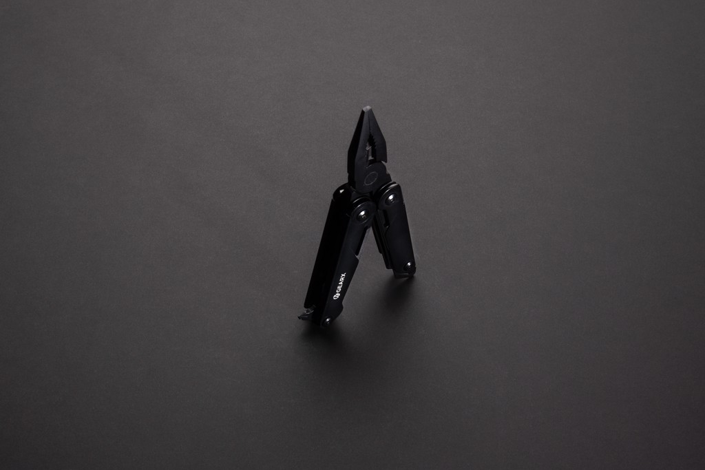 Luxusný multifunkčný nástroj pre široké využitie vo vnútri aj vonku. Všestrannosť, pevnosť a odolnosť ho charakterizujú najlepšie. Telo vyrobené z luxusného hliníka, nástroje a čepeľ z prémiovej 420 nehrdzavejúcej ocele. Všetko v čiernom odtieni. Disponuje celkom 13 funkciami: nôž (so zámkom), pílka, pilník, veľký plochý skrutkovač (so zámkom), štandardný plochý skrutkovač, krížový skrutkovač, kliešte, štandardné kliešte, štiepačky, otvárač fliaš, skrutkovač, nôž na pás, nôž na balíky. Balené v luxusnej darčekovej krabičke.