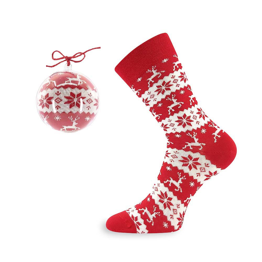 Vianočné ponožky s klasickým nórskym dizajnom, 80% bavlna, 15% polyamid, 5% elastan. Balené v priehľadnej guli s možnosťou zavesenia na stromček a darčekovej krabičky. Veľkosť 27-45.