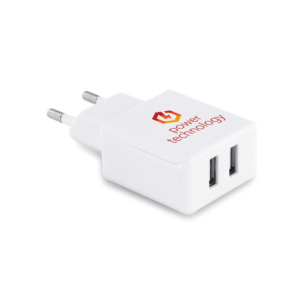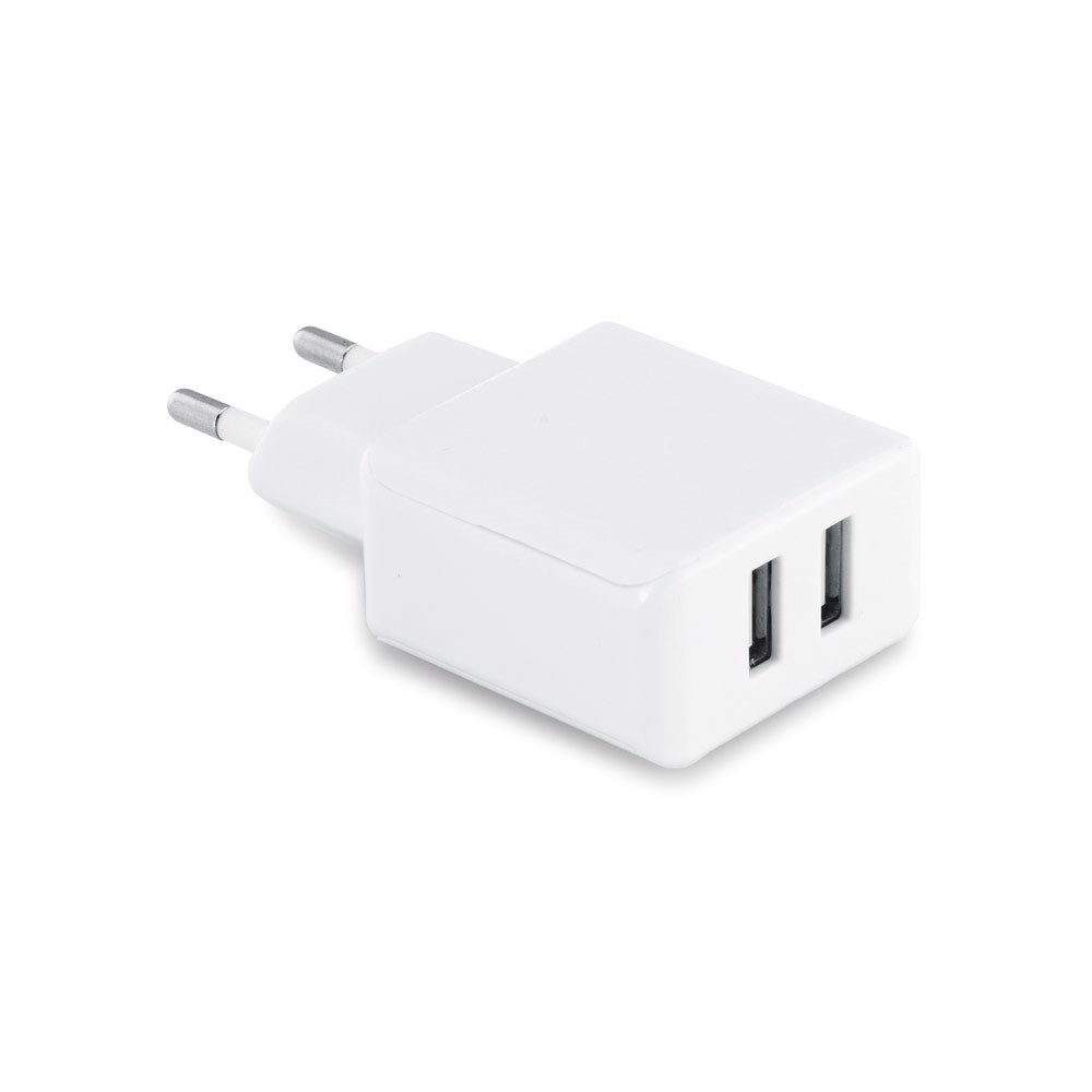 USB adaptér z ABS s 2 výstupmi 5 V/1 – 2.1 A. 62 x 42 x 23 mm