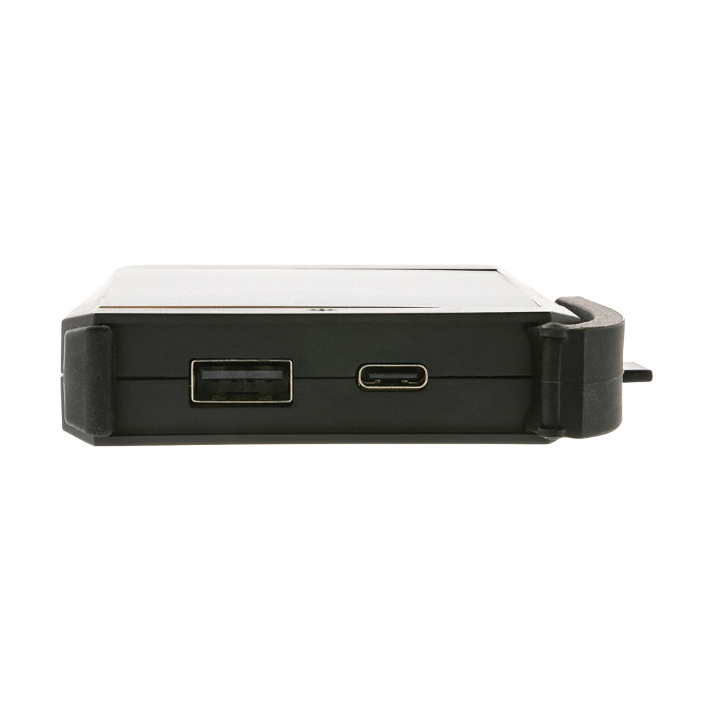 Powerbanka s kapacitou 5 000 mAh s možnosťou solárneho nabíjania. Využíva vysoko kvalitné monokryštalické solárne panely s konverzným pomerom 19%. Rýchlosť solárneho nabíjania: 5V/130 mA. Stupeň nabíjania vždy závisí od slnečných podmienok. Integrovaný stojanček na nastavenie ideálneho uhla. Vrátane 10 W bezdrôtového nabíjania. Vyrobené z RCS recyklovaného ABS. RCS (Recycled Claim Standard) je globálny štandard, ktorý umožňuje overiť použitie recyklovaného materiálu v produkte naprieč celým dodávateľským reťazcom. Celkový podiel recyklátu podľa váhy produktu: 21%. Vrátane nabíjacieho kábla z RCS recyklovaného TPE. Balené v FSC darčekovom balení. Vstup USB C: 5V/2A. Výstup: USB A: 5V/2A; USB C: 5V/2A. Registrovaný dizajn®.