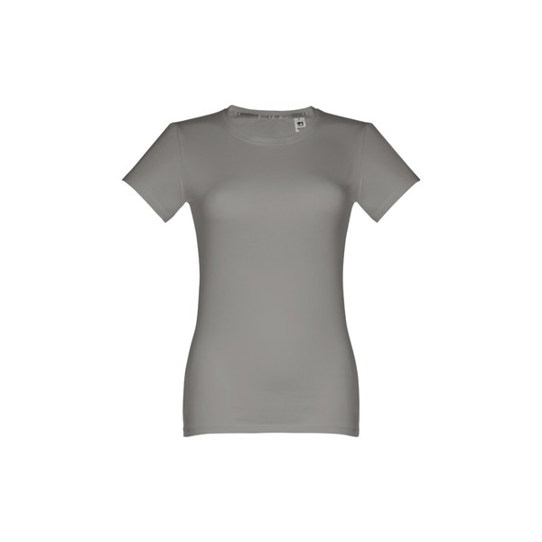 Dámske džersejové tričko priliehavého strihu zo 100% bavlny (190 g/m²). Farba 83: 90% bavlna a 10% viskóza. Tenký džersejový golier so saténovým rebrovaním. Dvojité prešitie na rukávoch a spodnom leme. Šité po stranách. Veľkosti: S, M, L, XL, XXL