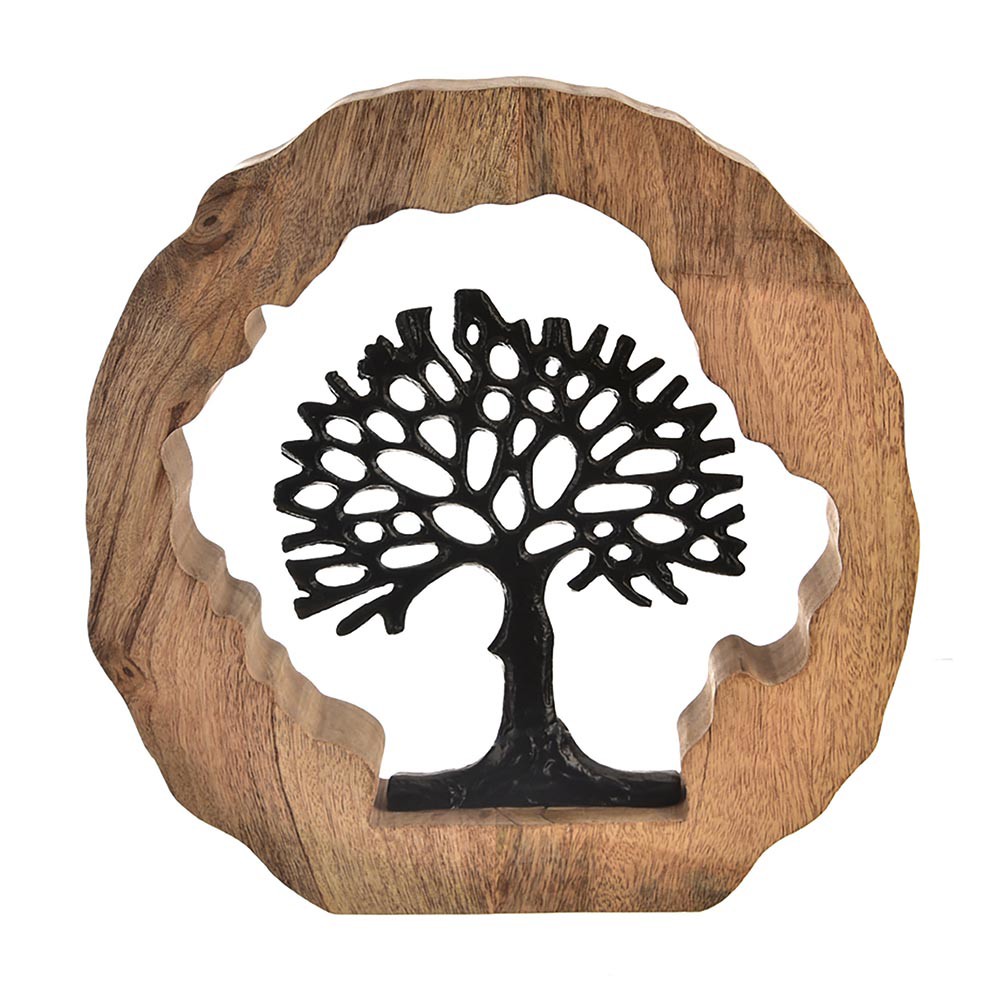 Strom života, dekorácia z mangovníkového dreva a kovu. Ručne vyrobené s miestom pôvodu v Indii.