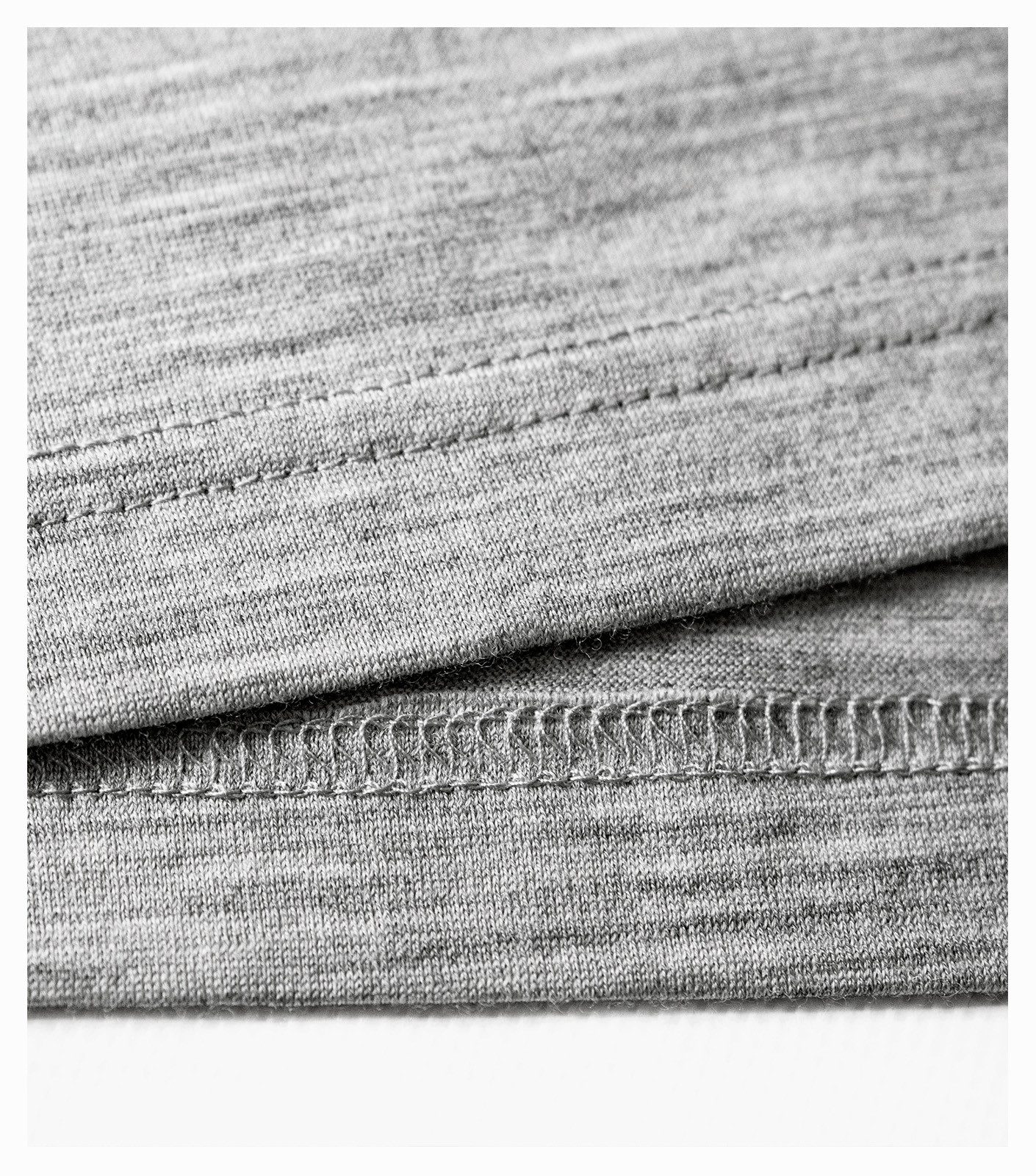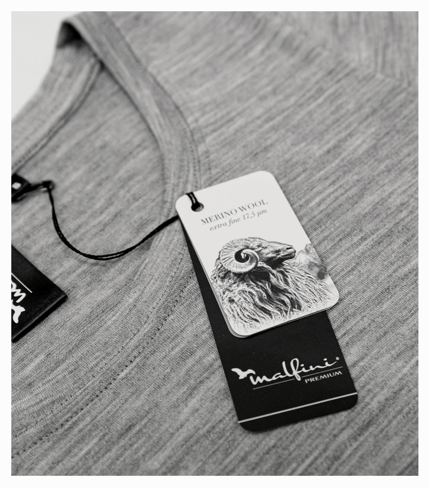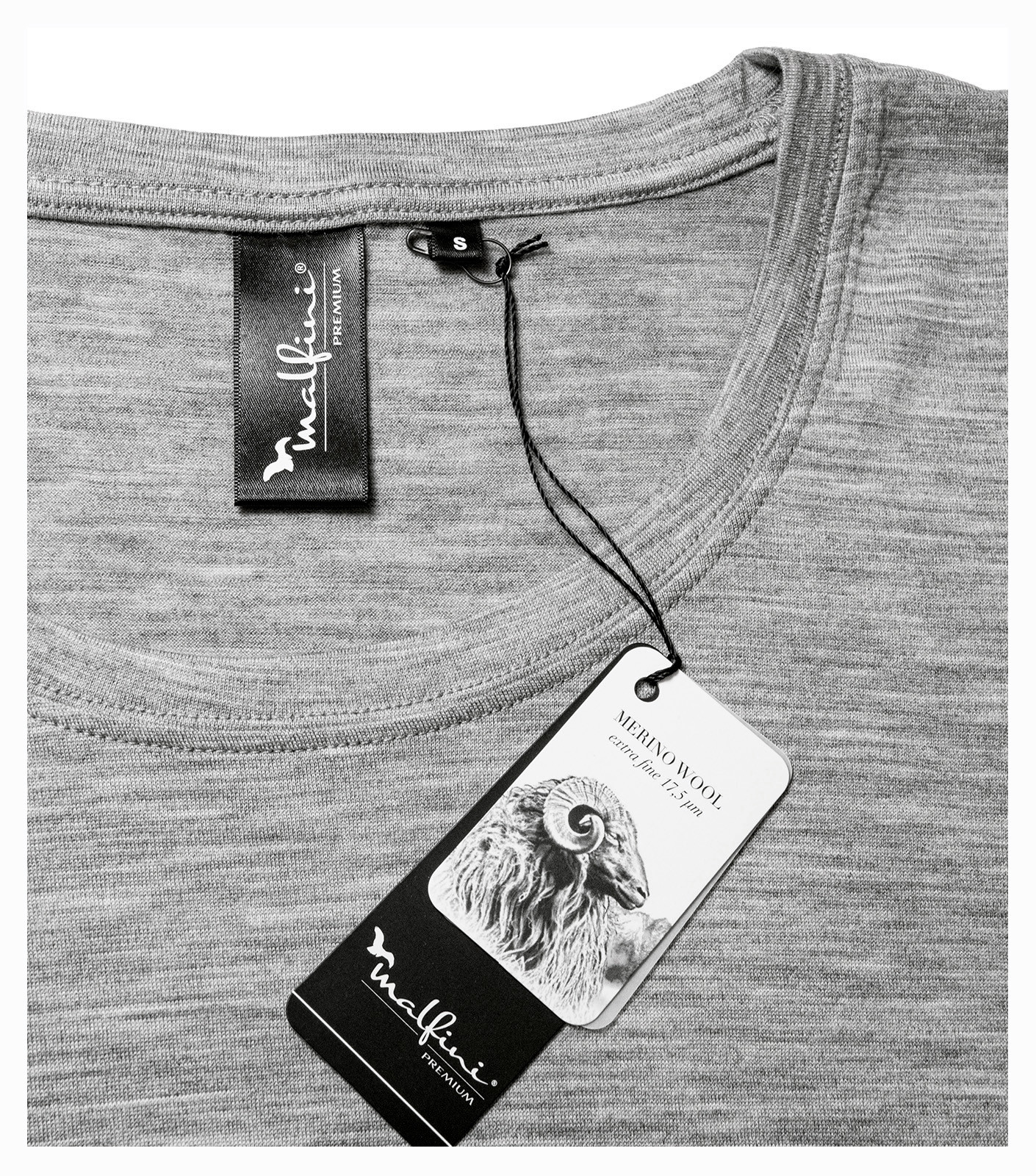Extra jemná merino vlna, nekrčivý a vysoko priedušný materiál, termoregulačné a antibakteriálne vlastnosti, schopnosť odvodu vlhkosti a absorpcie zápachu, priliehavý strih s bočnými švami, hrubší guľatý výstrih, úzky lem priekrčníka z povrchového materiálu, vnútorná časť priekrčníka začistená páskou z povrchového materiálu, spevnenie ramenných švov páskou, dlhé rukávy s manžetou, odporúčané sušiť vo vodorovnej polohe