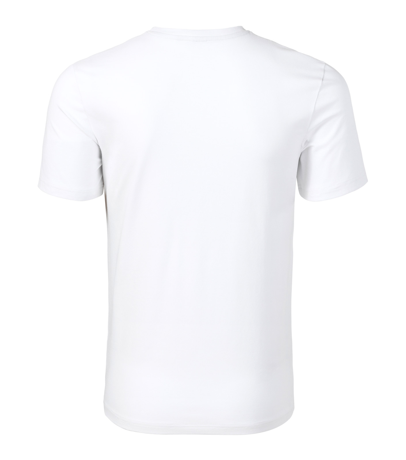 Strečový materiál udržiavajúci stálosť tvaru, priliehavý strih s bočnými švami, výstrih v tvare V, úzky lem priekrčníka z rebrového úpletu 1:1 s 5 % elastanu, vnútorná časť priekrčníka začistená kontrastnou páskou, spevnenie ramenných švov páskou