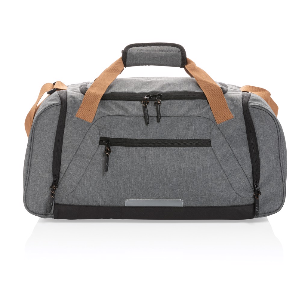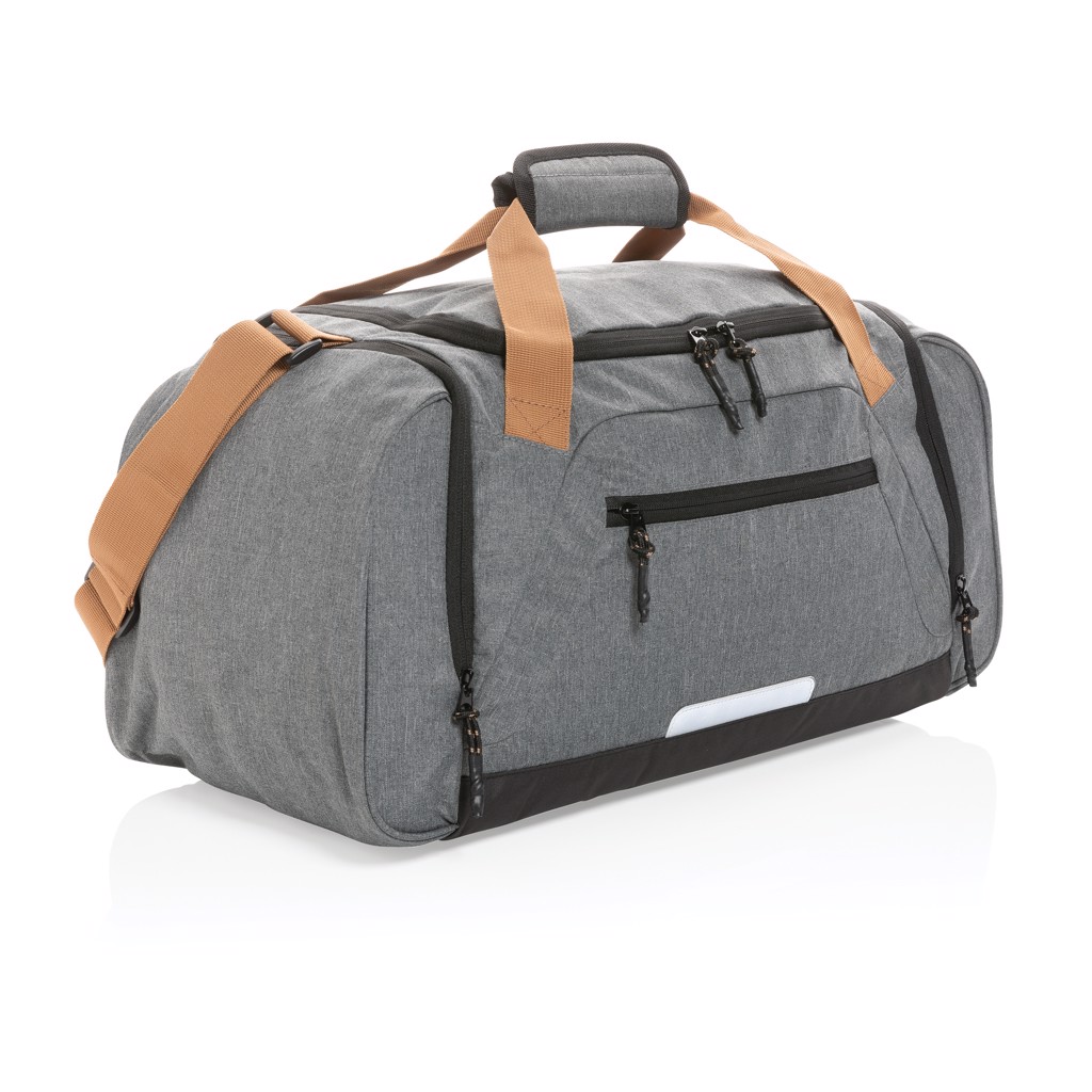 Víkendová taška Urban outdoor z kolekcie Impact ponúka viac než dostatok priestoru pre niekoľkodenné výlety alebo šport. Priestranný hlavný oddiel na zips, predný menší oddiel na zips pre rýchly prístup k drobnostiam. Moderný outdoorom inšpirovaný dizajn. Vonkajšia časť vyrobená z 50% recyklovaného polyesteru, podšívka zo 100% recyklovaného polyesteru. Vrátane skenovateľnej zložky AWARE™ garantujúcej obsah recyklátu. Na výrobu bolo využité 24,05 500ml PET fliaš. Z výťažku každého predaného produktu z kolekcie Impact prispievame 2% na podporu iniciatívy Water.org.