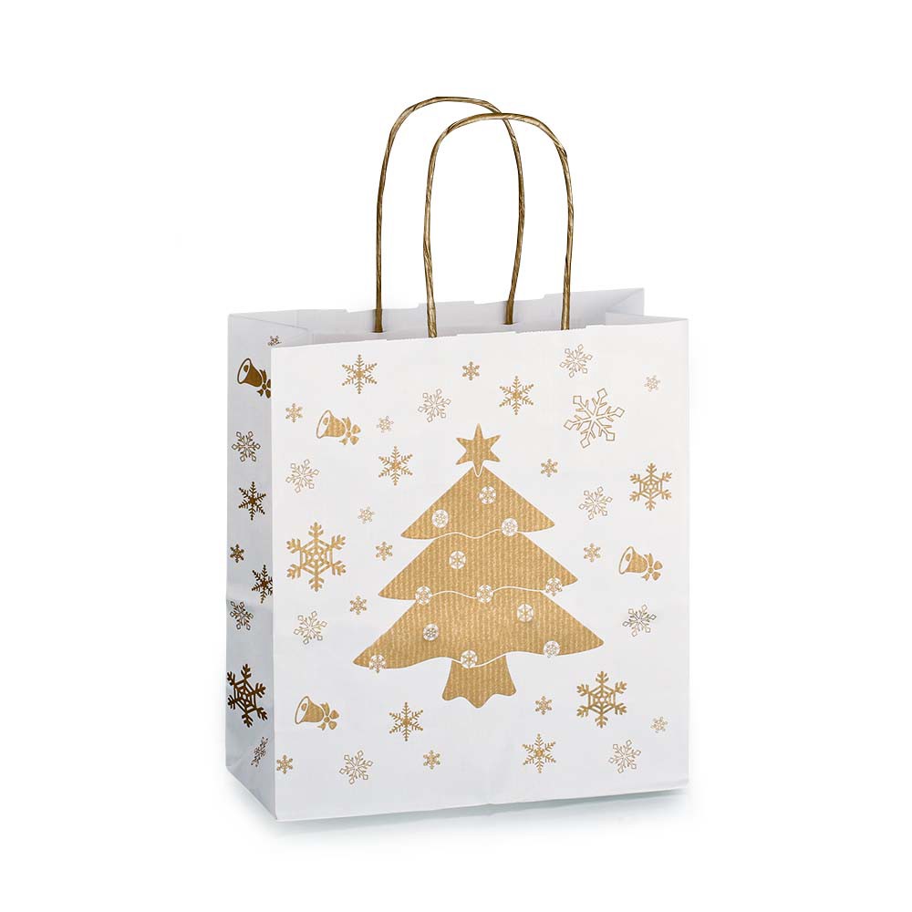 Darčeková papierová taška s vianočným motívom a skrútenými rukoväťami. Rozmer: 180 × 80 × 200 mm