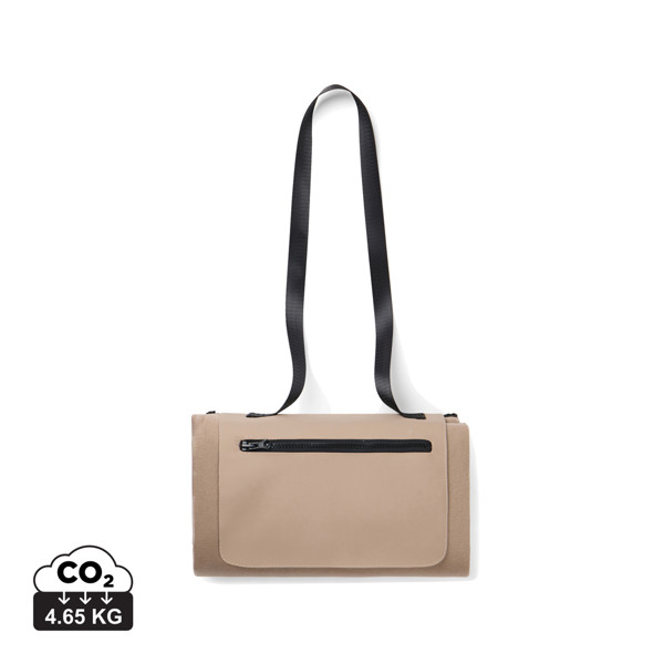 Vezmite si so sebou piknikovú deku Baltimore. Deka má mäkký flísový povrch pre maximálne pohodlie a vodoodolnú spodnú vrstvu z PEVA, ktorá chráni pred vlhkosťou a chladom. Vybavená dlhým popruhom pre jednoduché nosenie a praktickým predným vreckom na zips na kľúče, telefón alebo iné drobnosti. Veľkosť: 150x130 cm. Certifikované podľa RCS (Recycled Claim Standard), čo zaručuje, že celý dodávateľský reťazec recyklovaných materiálov je certifikovaný. Celkový podiel recyklovaného materiálu je založený na celkovej hmotnosti produktu. Tento produkt obsahuje 47 % RCS-certifikovaného recyklovaného polyesteru.