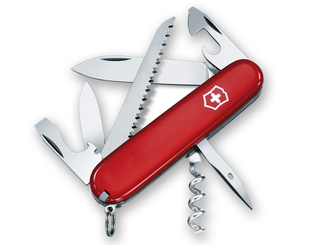 Vreckový nôž z nerezovej ocele a plastu s 13 funkciami.