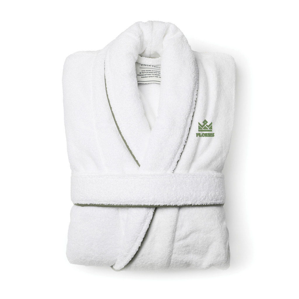 Luxusný župan zo 100 % bavlny. Jedná sa o klasický model županu s mimoriadne širokým golierom a opaskom v páse. Zdobia ho pekné detaily, ako sú skryté švy a kontrastné lemovanie na golieri. Je vyrobený z dlhých bavlnených vlákien s nekrútenými niťami. Výsledkom je neuveriteľne mäkký župan, ktorý si nikdy nebudete chcieť vyzliecť.