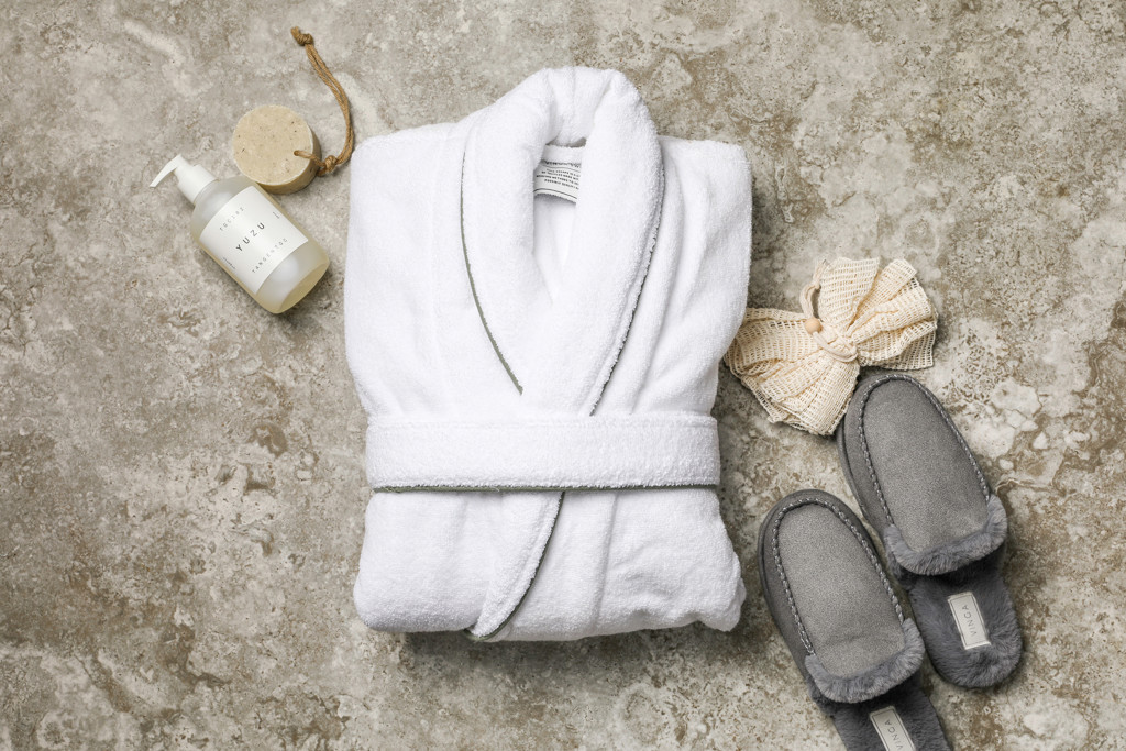 Luxusný župan zo 100 % bavlny. Jedná sa o klasický model županu s mimoriadne širokým golierom a opaskom v páse. Zdobia ho pekné detaily, ako sú skryté švy a kontrastné lemovanie na golieri. Je vyrobený z dlhých bavlnených vlákien s nekrútenými niťami. Výsledkom je neuveriteľne mäkký župan, ktorý si nikdy nebudete chcieť vyzliecť.