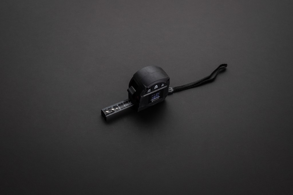 Prémiovo vybavený zvinovací meter s 5 m karbónovým obojstranným pásmom a integrovaným meracím laserom (trieda 2) s dosahom až 30 m. Odolné pogumované puzdro. Integrovaný LCD displej na čítanie nameranej dĺžky laserom. Integrovaná batéria pre opakované dobíjanie. Balené v luxusnej darčekovej krabičke.